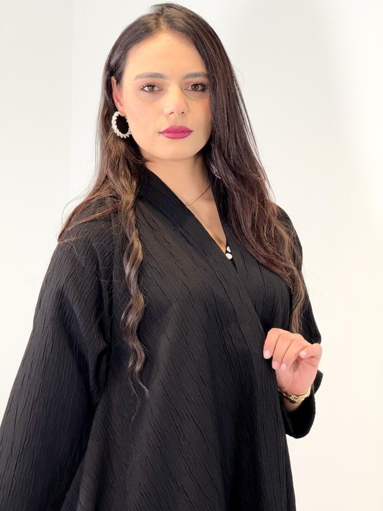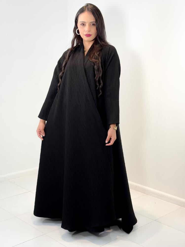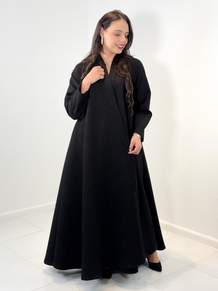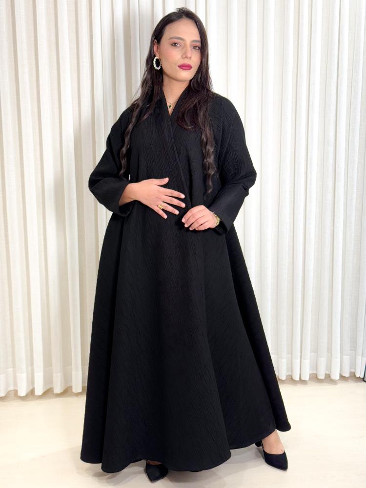 عباية دبل كلوش قماش كوري مكسر مع طرحة