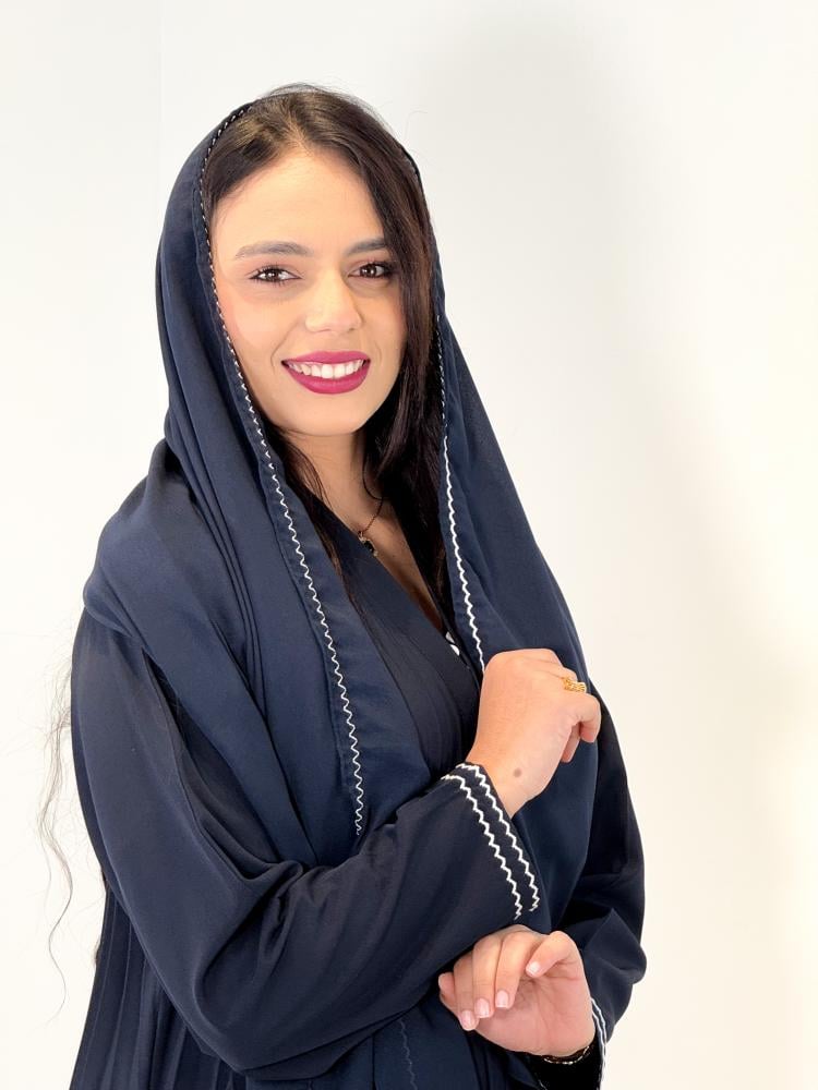 - عباية بتطريز ابيض تتضمن طرحة متناسقة لتكمل إطلالتك بشكل مثالي.