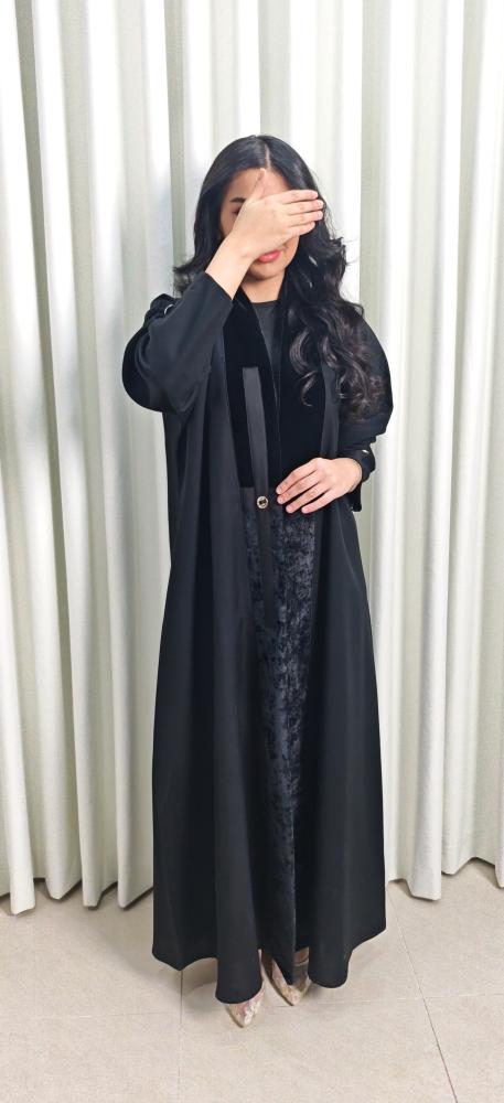 ياهلا وغلا في برد الشتاء اللي يستاهل أناقة مع عباية شتوي قماش كتان مع تدخيل مخمل من درة ميسان، اللي تجمع بين الرقي والبساطة بكل تفاصيلها! هالـعباية شتوي قماش كتان مصنوعة من كتان أسود خفيف ومريح، مع تدخيل مخمل فاخر على الصدر والياقة، يعطي لمسة دافئة وأنيقة تخليكِ مميزة في كل خروجة. القصة فضفاضة مع حزام رفيع لتحديد الخصر، وكلها من إنتاج سعودي يعكس الجودة والذوق الرفيع.