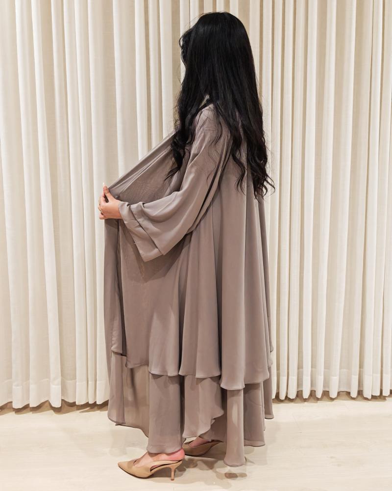 سواء كنتِ متوجهة إلى عملك الصباحي، أو في تسوق سريع، ستكون هذه الـ عباية طبقات ملاذك الآمن. إنها تجمع بين الاحتشام المطلوب والراحة القصوى، لتبدي دائمًا مرتاحة وواثقة في خطواتك.