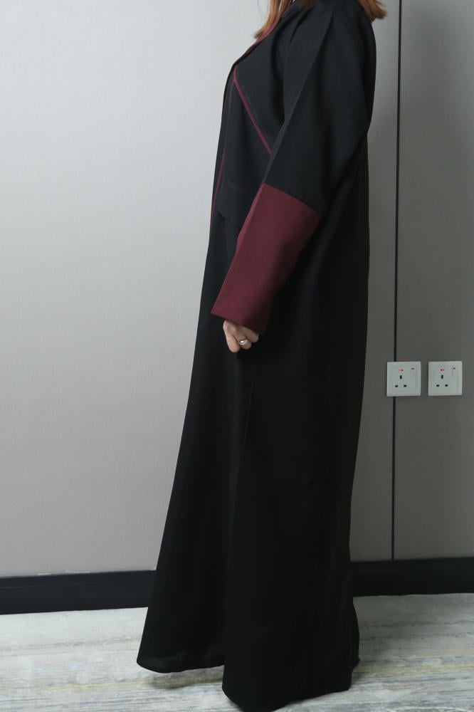 عباية قصة بليزر عادية أنيقة تجمع بين البساطة والفخامة، مصنوعة من قماش الكتان الناعم مع تدخيلة عنابي تضفي لمسة جريئة وعصرية تناسب جميع المناسبات والأوقات. تصميم عملي وأنيق لمن تبحث عن التميز والراحة في آن واحد.