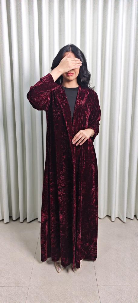 - الاسم: عباية مخمل مغسول قصة بليزر كلوش