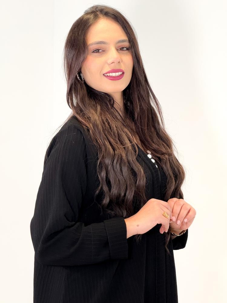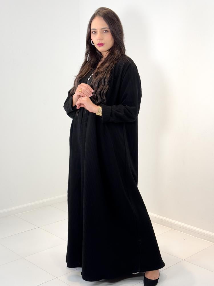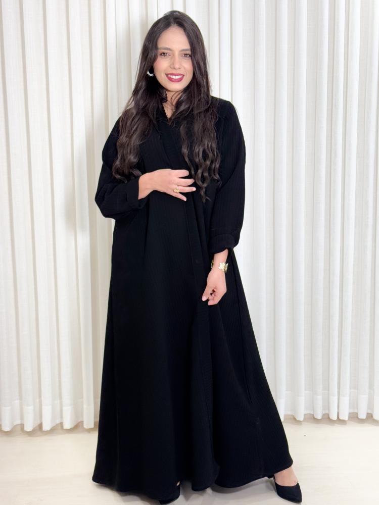 عباية نص كلوش، مصنوعة من قماش كريشه فاخر بلون أسود يعكس الفخامة والأناقة. تجمع العباية بين الراحة والعصرية بفضل قصتها المنسابة التي تمنحك حرية الحركة، مما يجعلها مثالية للمناسبات اليومية والرسمية. قماش الكريشه يمنح العباية مظهراً مميزاً بملمسه الناعم والمرن، ليضيف لمسة من الجمال والفخامة على إطلالتك.
