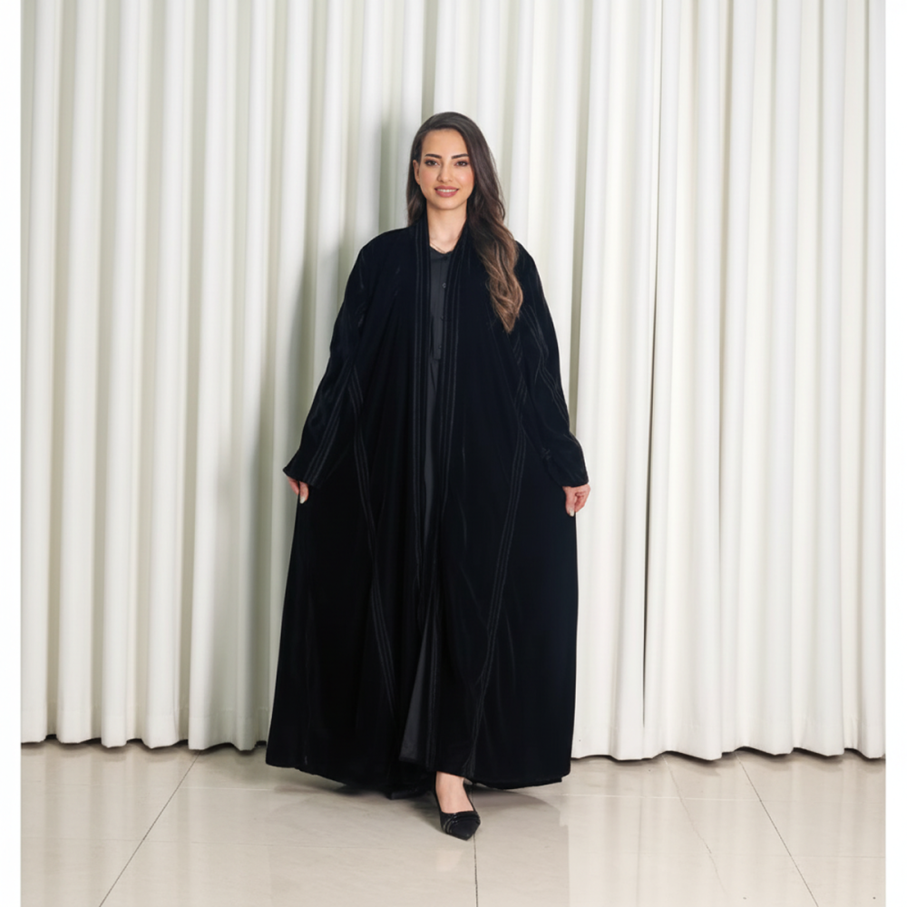 انفردي الحين بعباية مخمل ناعم تضيف لمظهرك لمسه من الفخامة في كل حضور لكي.
